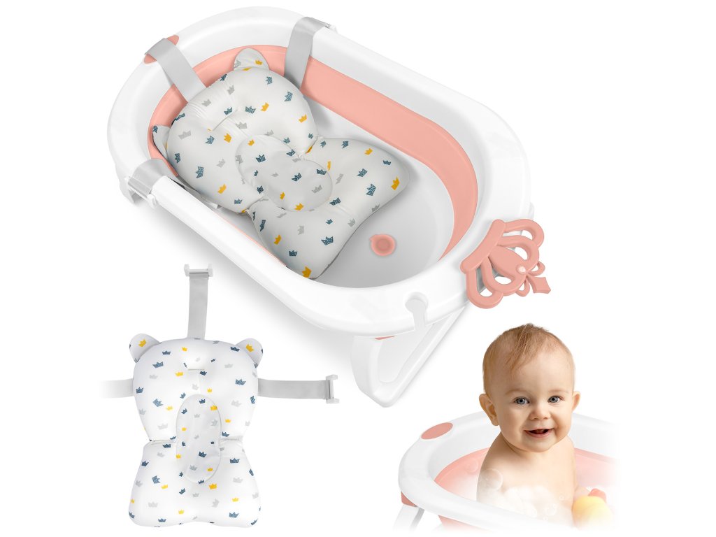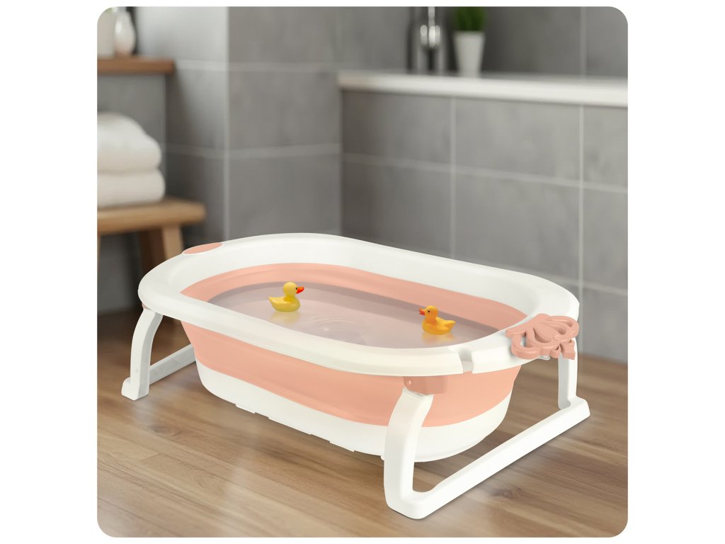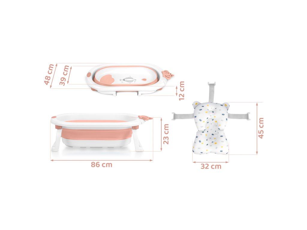 Skladacia vana pre deti, bábätká s vložkou Ricokids RK-286 bielo-ružová