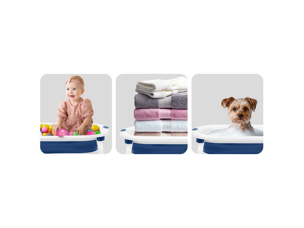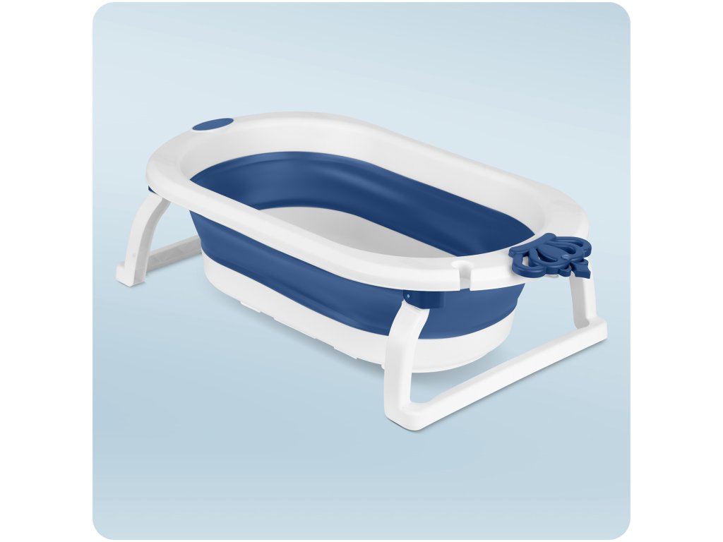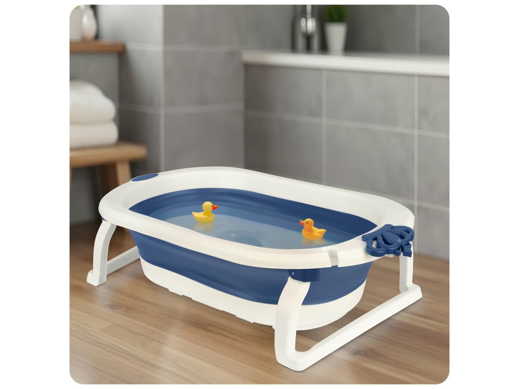 Vanička vďaka rozkladacím nohám sa nezloží počas kúpeľa a protišmykové nožičky zabezpečia bezpečnosť na klzkom povrchu.