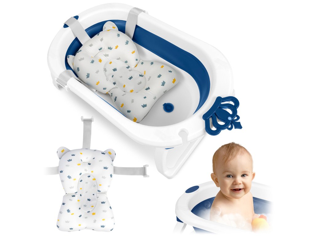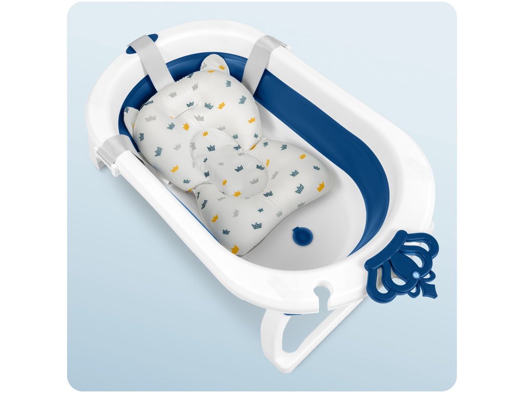 V balení s vaničkou dostanete jemnú, profilovanú vložku, ktorá jemne podopiera hlavičku a chrbátik bábätka. Vďaka trom pevným úchytom ju pevne pripevníte na okraje vaničky – bez pohybu, bez stresu. Vložka je vyrobená z rýchloschnúceho materiálu, takže po kúpeli ju vyberiete a vyžmýkate okamžite. Maximálny komfort a hygiena počas chvíľ strávených vo vode!