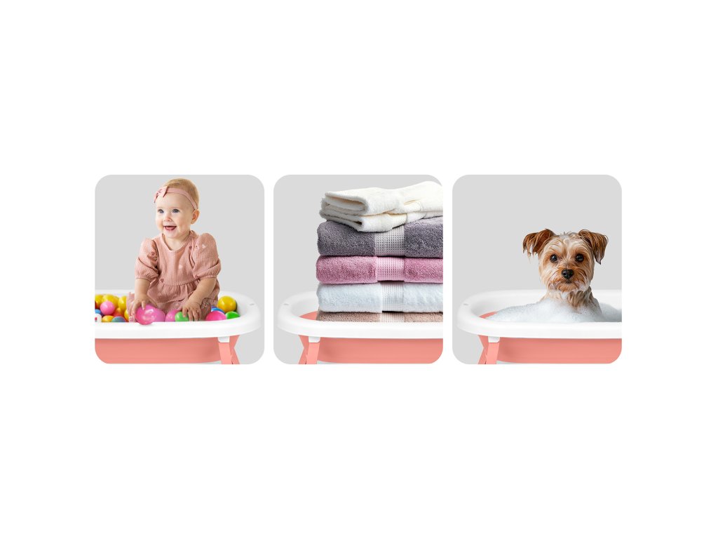 Skladacia vanička pre deti, dojčatá so stojanom, teplomerom a vložkou Ricokids RK-287 bielo-ružová