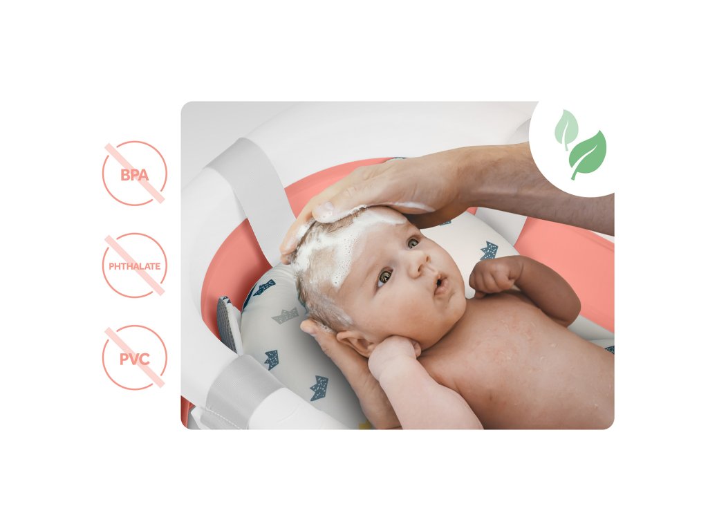Spoľahlivá vanička pre deti s vložkou pre novorodencov a zabudovaným teplomerom. Komfortná a funkčná: skladacia, ľahká, maximálne zaťaženie: 45 kg. Bezpečná: protišmykové nohavice, so zabudovaným teplomerom, uzáver mení farbu pod vplyvom teploty vody (nad 38 stupňov). Kvalita premium: spĺňa prísne európske normy bezpečnosti, prepracovaná v každom detaile. Jemná podpora od prvých dní – mäkká, rýchloschnúca vložka pre novorodenca V súprave s vaničkou dostanete jemnú, profilovanú vložku, ktorá jemne podopiera hlavičku a chrbátik bábätka. Vďaka trom pevným úchytom ju upevníte bezpečne na okrajoch vaničky – bez spúšťania, bez stresu. Vložka je vyrobená z rýchloschnúceho materiálu, takže po kúpaní ju vyberiete a vyžmýkate v okamihu. Maximálny komfort a hygiena počas každej chvíľky strávenej vo vode! Kvalita premium: vysokokvalitná rýchloschnúca tkanina, vankúš upevnený nastaviteľnými pásmi, prepracovaná v každom detaile. Elektronický teplomer! Voda je sledovaná vo vaničke pomocou elektronického teplomeru, vybaveného precíznou sondou a čitateľným displejom LCD, z ktorého si odčítate meranie teploty. Zvýšená bezpečnosť Uzáver zmení svoju farbu z ružovej na bielu, ak teplota vody prekročí 38°C. Voliteľné nohy pre pohodlie V závislosti od miesta a vybavenia v kúpeľni, vaničku je možné nastaviť na priložených vysokých nohách alebo len na sklápacích podperách na akúkoľvek rovnú plochu — vyberte pohodlnejšiu pre seba možnosť! Spoľahlivá v každej fáze rozvoja! Vanička, ktorá rastie s vaším dieťaťom. 0–6 m: s mäkkou vložkou novorodeneckou pre bezpečné a pohodlné podopretie. 6–18 m: bez vložky, ale so stabilnými nohaviciami, ideálna keď dieťa samo začne sedieť. 18 m+: v režime väčšieho priestoru pre voľné kúpanie zvedavých predškolákov. Investícia na roky – od prvých dní až po samostatné čľapkanie! Kúpanie bez špliechania: zabudovaný držiak na sprchovú hlavicu Vďaka zabudovanému držiaku na sprchovú hlavicu je kúpanie mimoriadne pohodlné a bezpečné. Stabilne uchytená hlavica umožňuje voľné nalievane vody bez špliechania – stačí nastaviť vaničku, naliať presne toľko, koľko treba a nasmerovať prúd pod správnym uhlom. Týmto spôsobom môžete tiež voľne umývať dieťa oboma rukami. Stabilná a 100% bezpečná! Vďaka sklápateľným nohám sa vanička nesklopí počas kúpeľa. Protišmykové podpery zabezpečia bezpečnosť na šmykľavej ploche. Materiál vaničky neobsahuje BPA ani iné škodlivé látky, takže kúpeľ bábätka je 100% bezpečný. Kompaktná veľkosť a pohodlné skladovanie! Vďaka možnosti sklopenia vaničku ľahko vezmete so sebou na cestu alebo schováte v kúpeľni. Užitočná ako pri každodennej starostlivosti, tak aj na cestách. Jednoducho a rýchlo zložíte vaničku. Prepracovaná v každom detaile! Elegantné dokončenia a ergonomický dizajn spôsobujú, že vanička nebude len praktickým riešením, ale aj štýlovým prvkom výzdoby bytu. Táto univerzálna vanička môže byť určená ako na kúpanie dojčiat, tak aj pre o niečo väčšie, niekoľkoročné deti. Malým stačí naliať 15-20 litrov vody a bezpečne oprieť ležiace dojča na špeciálnej vložke alebo na nakláňajúcom sa dne vaničky. No vďaka svojej veľkej, 45-litrovej kapacite, vanička môže poslúžiť oveľa dlhšie a pri úplnom napustení vodou sa v nej pohodlne okúpe aj 2- alebo 3-ročné dieťa. Ideálna voľba pre vaše dieťa! Keď vaše dieťa vyrastie z vaničky, môžete ju využiť na iné spôsoby. Vytvorte bazénik s guličkami na hranie. Použite ako misu na pranie. Použite na kúpeľ domácich zvierat.Dodatočné parametre