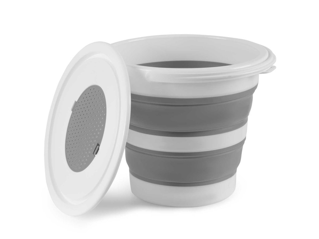 Skladacie vedro zaberie málo miesta, čo je ideálne v malých priestoroch, ako sú byty, karavany alebo stany.