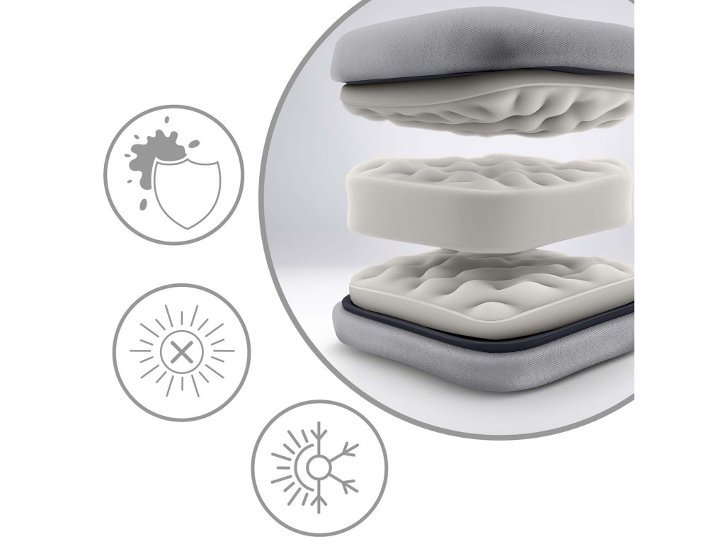 Mäkký a pružný vankúš je pokrytý obliečkou z vysoko kvalitnej tkaniny. Vďaka tomu je odolný a jemný pre pokožku.