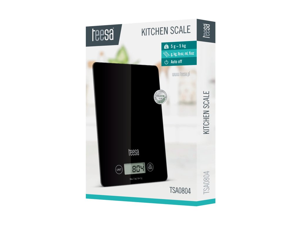Nástroj nevyhnutný pre každú pani domu a zariadenie, bez ktorého si ťažko predstaviť prácu v kuchyni. Kuchynská váha značky Teesa, s maximálnym zaťažením 5 kg, presne odmeria množstvo ingrediencií potrebných na prípravu domácich pečienok. Presnosť v každom grame Vďaka maximálnej hmotnosti 5 kg a minimálnej 5 g, váha Teesa sa osvedčí pri veľkých porciách potravín, ako aj pri drobných prísadách. S presnosťou na 1 g zariadenie umožňuje presné kontrolovanie množstva ingrediencií, čo je zvlášť užitočné pri pečení, kde každý gram môže ovplyvniť konečný výsledok. Dodatočná funkcionalita Veľkou výhodou TSA0804 je funkcia tarovania, ktorá umožňuje odmerať hmotnosť samotného produktu. Váha je vybavená čitateľným LCD displejom, ktorý zobrazí meranie v jednej z piatich jednotiek – v gramoch, kilogramoch, mililitroch, librách alebo unciach. Elegantný dizajn Čierne, tvrdené sklo, z ktorého je vyrobená platforma váženia, nielen garantuje mimoriadnu odolnosť, ale zároveň dodáva elegantný vzhľad – teraz kuchynská váha nebude len meracím nástrojom, ale stane sa aj vkusným doplnkom interiéru kuchyne. Produkt je dostupný aj v bielej farbe.