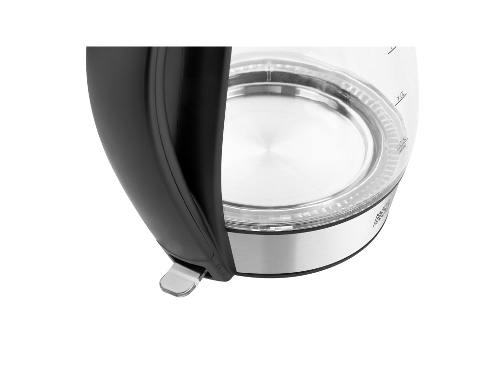 Plášť spotrebiča je kombináciou odolného borosilikátového skla odolného voči znečisteniu a brúsenej nehrdzavejúcej ocele, ktorú dopĺňa plastová rukoväť na výber v dvoch farbách: bielej alebo čiernej. Práve preto spotrebič dokonale zapadne do atmosféry každej kuchyne. Atraktivitu kanvice zvyšuje aj modré podsvietenie, ktoré pripomína vriacu vodu, ako aj funkcia automatického vypnutia a ochrana proti zapnutiu bez vody.