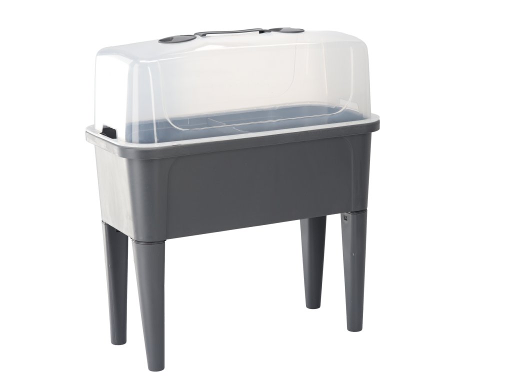 Skleníkový stôl s poklopom v elegantnej, sivej farbe, vyrobený z vysokokvalitného plastu PP, ktorý zaručuje trvanlivosť a odolnosť voči poveternostným podmienkam. Poklop chráni rastliny pred škodlivými vonkajšími faktormi, udržiava správnu teplotu a vlhkosť, čo podporuje ich zdravý rast. Poskytuje pohodlný priestor na sadenie a starostlivosť o rastliny. Ideálna voľba pre záhradkárov dbajúcich na efektívne pestovanie v skleníku.Materiál: PP plast