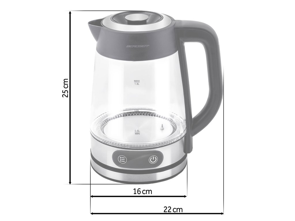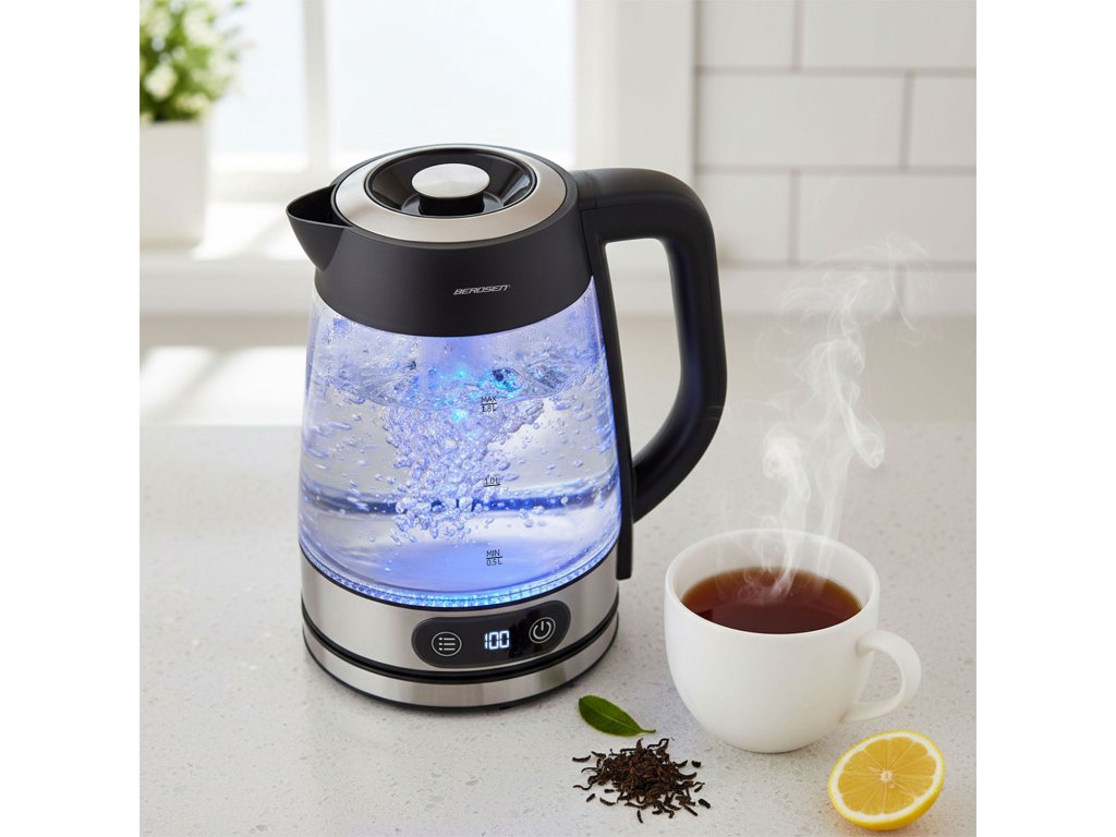 Sklenkanová elektrická kanvica s reguláciou teploty 1,8l 2200W Berdsen BD-715