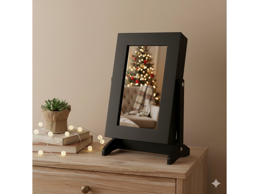 Hľadáte elegantné a funkčné miesto na svoje obľúbené trblietky ? Táto čierna skrinka na šperky so zrkadlom je kombináciou moderného dizajnu a praktickosti. Vďaka kompaktným rozmerom sa dokonale hodí do každej spálne či šatníka a mäkké čalúnené vnútro zaručí vašim pokladom plnú ochranu. Nie je to len skrinka – je to štýlová ozdoba interiéru a ideálny darček pre milovanú osobu. ??