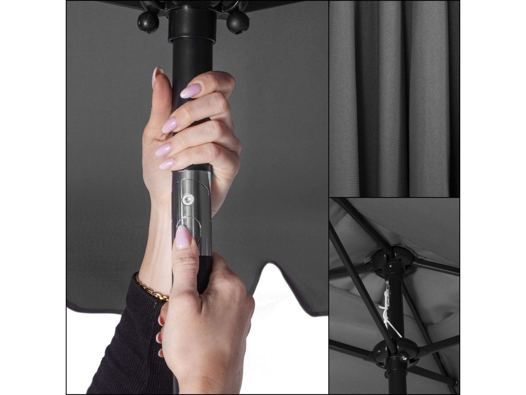 V prípade silného nárazového vetra sa odporúča dáždnik zložiť z dôvodu veľkého rozmeru striešky a bezpečnosti s tým spojenej.