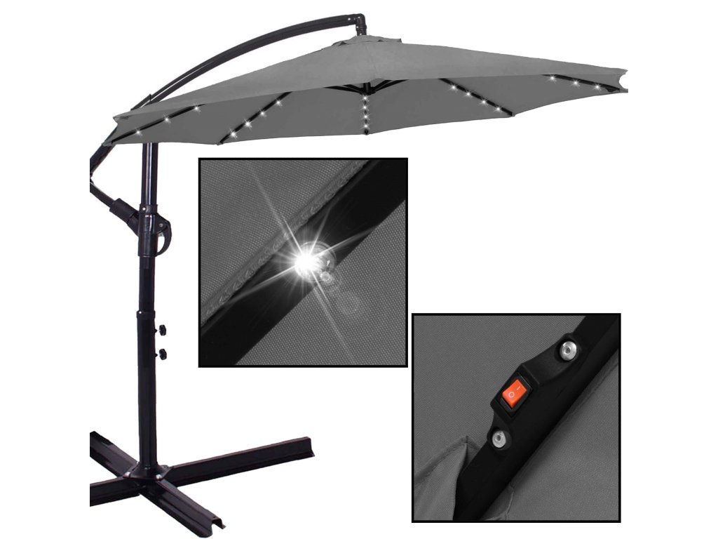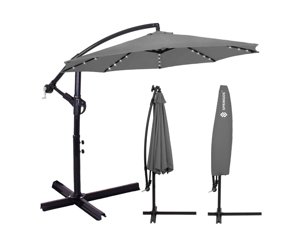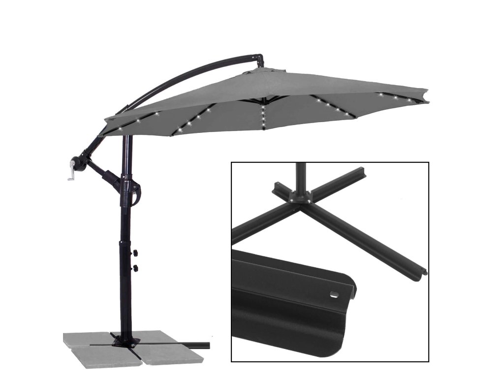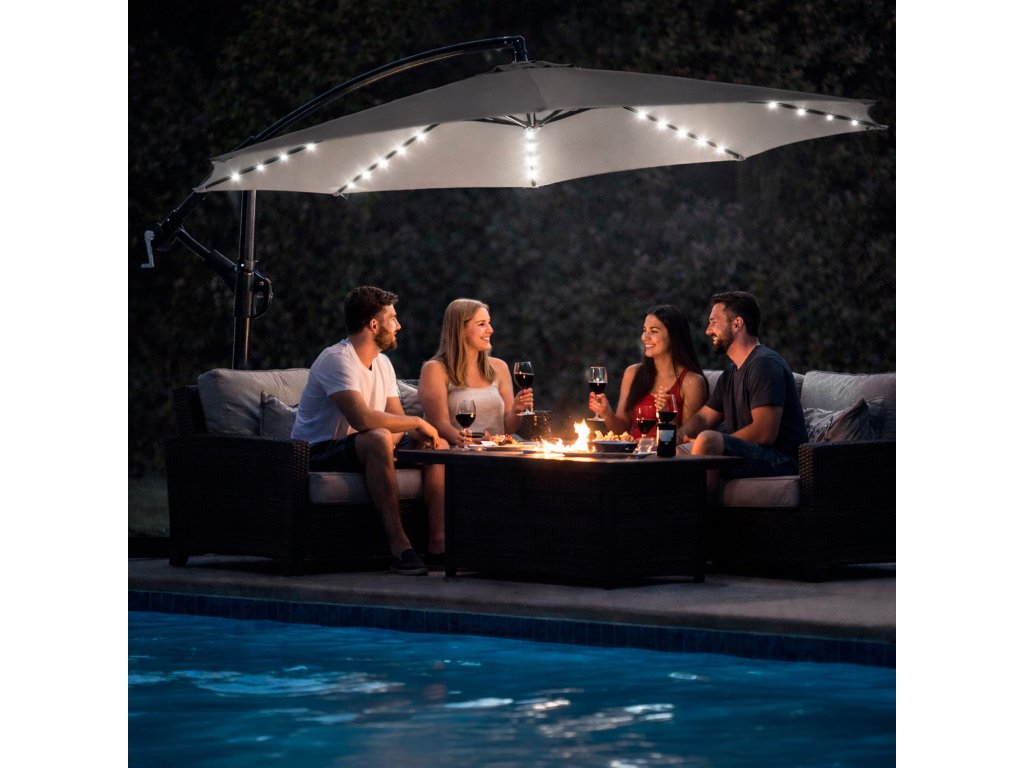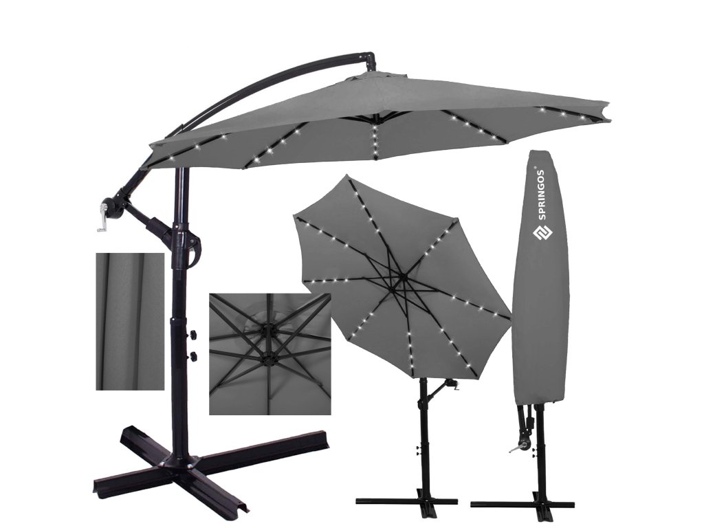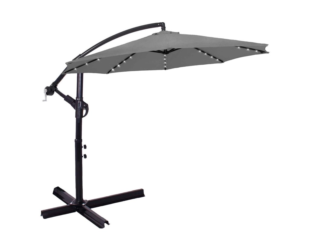 - Solárny panel pripevnený k dáždniku pomocou kábla, ktorý sa nachádza na špičke dáždnika