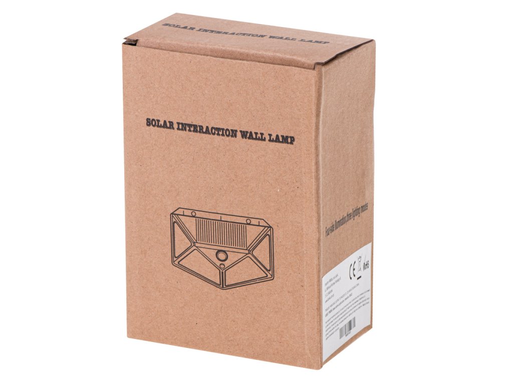 Vonkajšia lampa na montáž na stenu domu alebo strom. Má batériu nabíjanú solárnym svetlom. Svietidlo a solárna časť tvoria jeden celok na jednoduchú inštaláciu a prevádzku. Je vybavený súmrakovým snímačom pohybu. Môže sa používať aj v interiéri, v garáži alebo na chodbe.