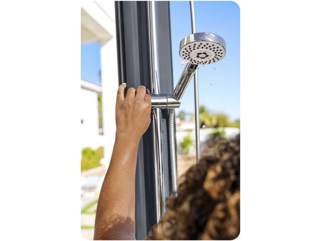 Hodí sa všade tam, kde potrebujete opláchnuť skôr, než vstúpite do bazéna, alebo len túžite po osviežení v horúčave.