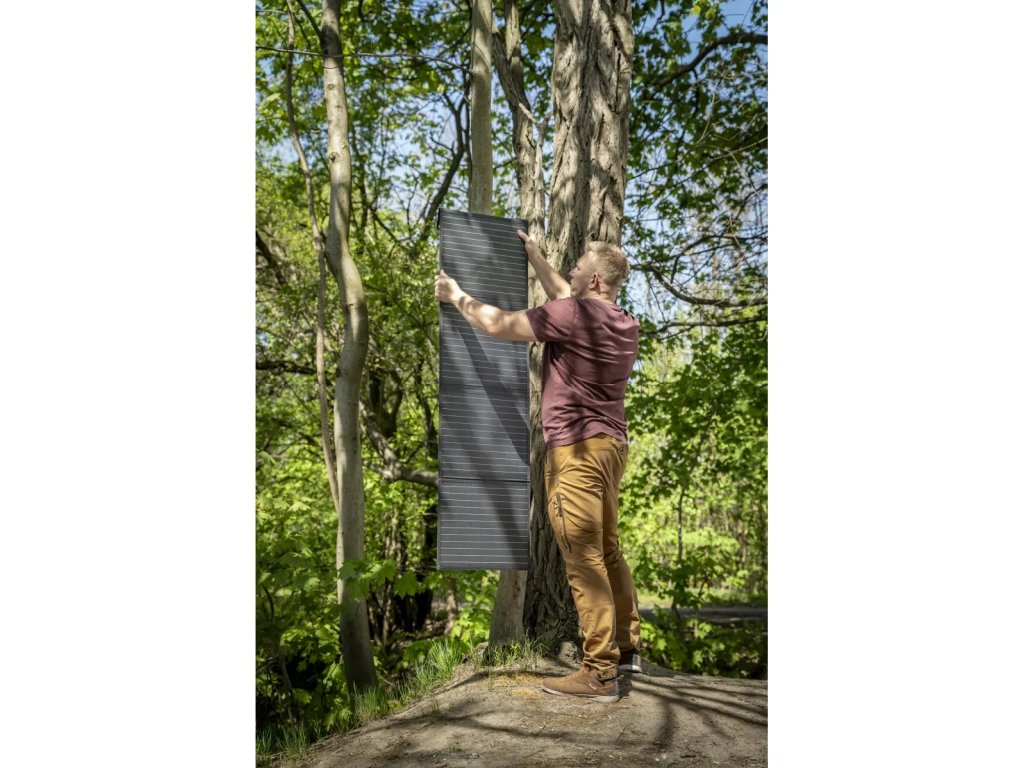 Je ideálnym riešením v situáciách, keď nemáme prístup k zdroju elektrickej energie, napríklad na výletoch v prírode alebo pri kempovaní, a potrebujeme nabiť svoju elektrocentrálu alebo iné elektrické zariadenie. Celé zariadenie sa skladá zo štyroch monokryštalických panelov, ktoré po zložení majú tvar puzdra, čo uľahčuje jeho prepravu a skladovanie.