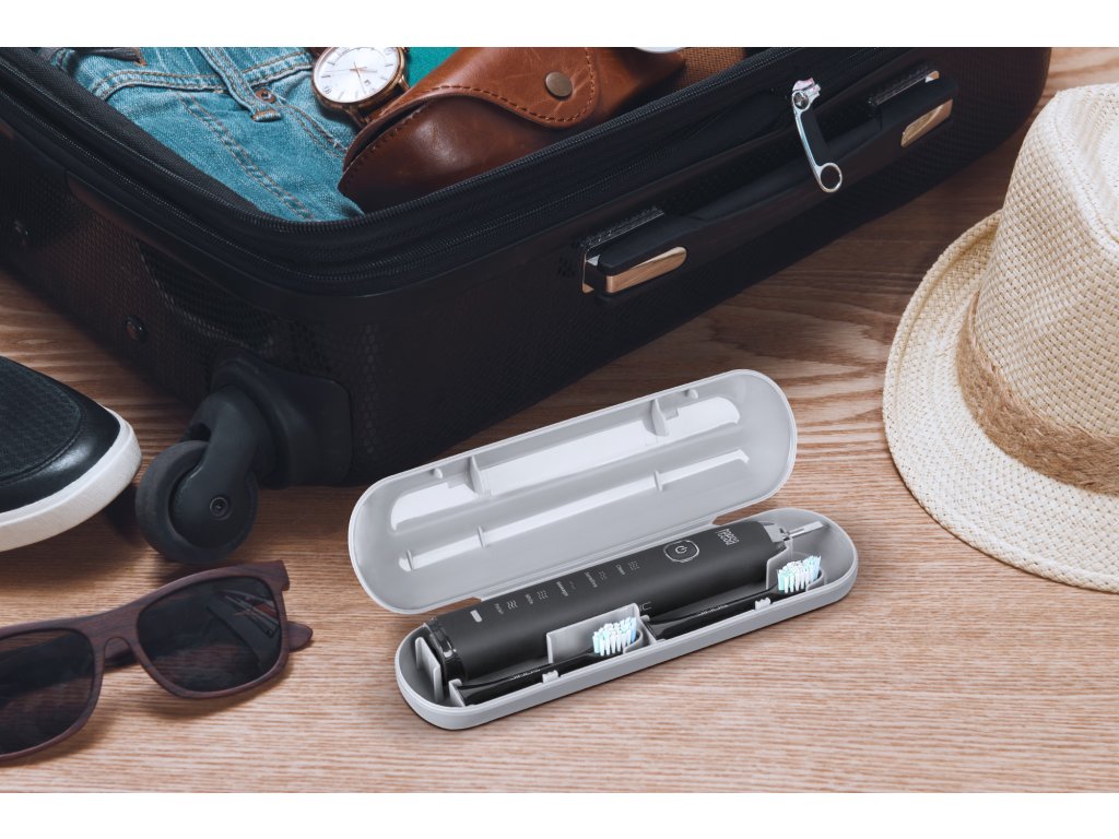 Neberiete si sonickú zubnú kefku na cesty, pretože sa bojíte, že sa zariadenie v kufri poškodí? To už nie je problém! Spolu so zubnou kefkou SONIC Black dostanete cestovné puzdro, aby ste si mohli zubnú kefku vziať vždy so sebou a starať sa o svoj úsmev, kdekoľvek budete chcieť.