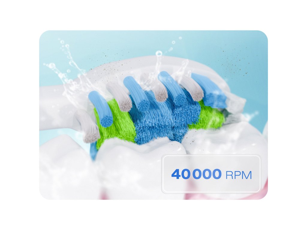 - 40 000 pulzačných pohybov za minútu – bleskovo odstraňujú zubný plak a usadeniny.