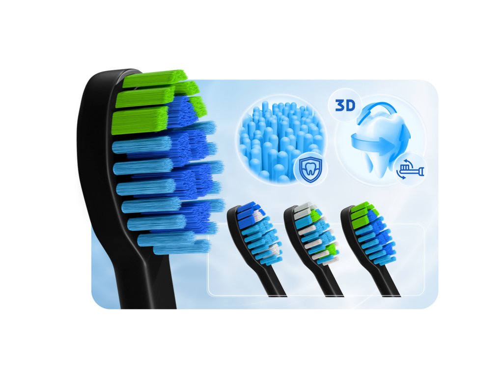 Vďaka zadnej strane hlavice môžete rýchlo a ľahko očistiť jazyk, eliminujúc baktérie a zaručujúc dlhodobú sviežosť dychu.