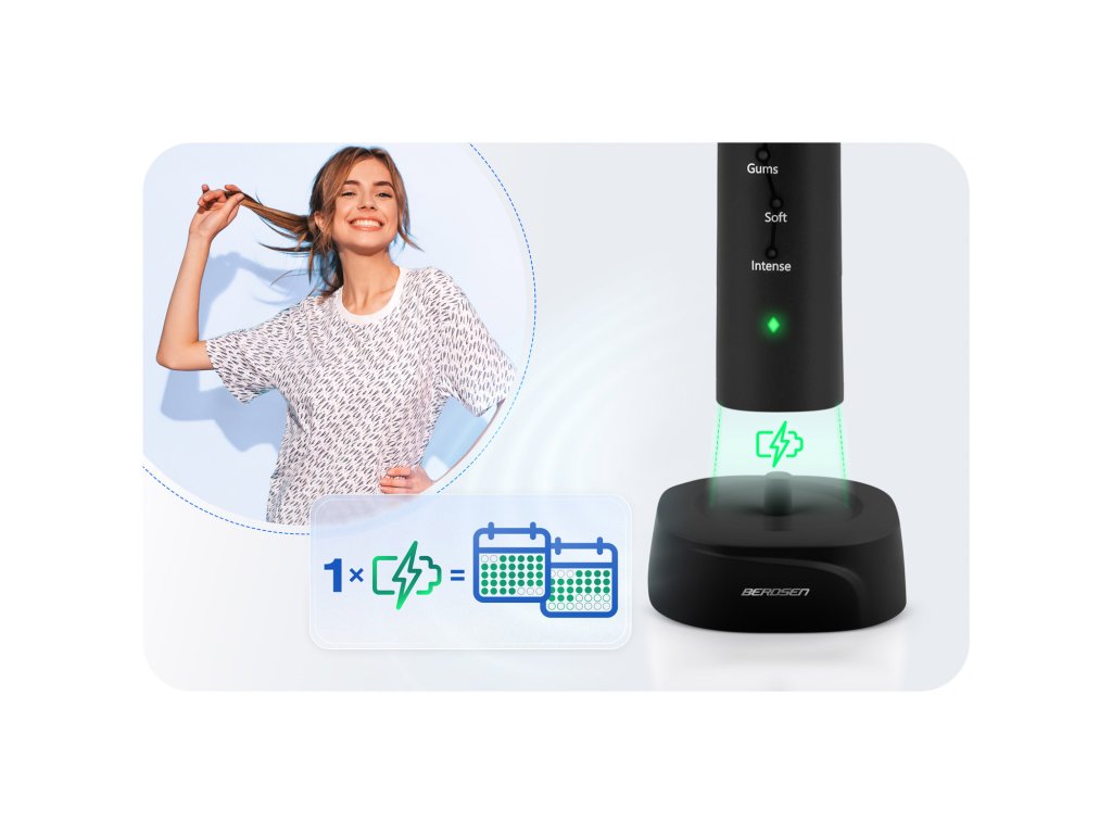Na jedno plné nabitie kefka funguje až 50 dní, čo z nej robí ideálne riešenie na každý deň a počas cestovania.