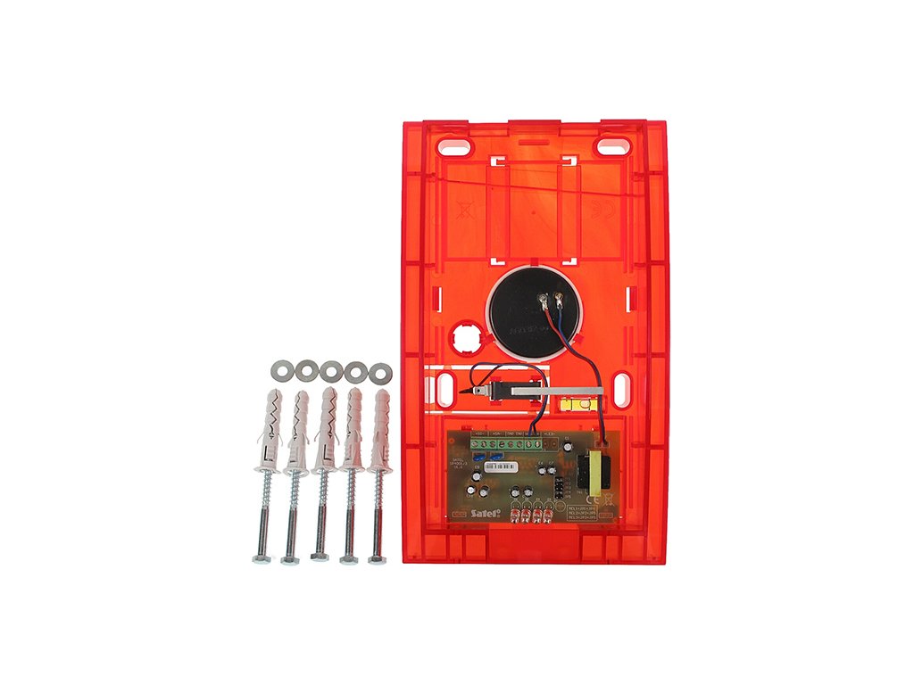 Opticko-akustický signalizátor určený na montáž vonku budov, vybavený LED diódami, ako aj piezoelektrickým meničom. Na výber je jeden z troch druhov modulovaného zvukového signalizovania s intenzitou 120 dB. Skriňa vyrobená z polykabonátu, zaručuje vysokú mechanickú odolnosť. Signalizátor má tiež ochranu proti sabotáži, ktorá chráni pred otvorením skrine alebo odtrhnutím od steny, a vnútorný kryt z pozinkovaného plechu poskytuje dodatočnú ochranu elektronickej dosky a meniča pred mechanickým poškodením. Vďaka správnej impregnácie je elektronická jednotka tiež odolná voči vplyvu náročných podmienok prostredia.