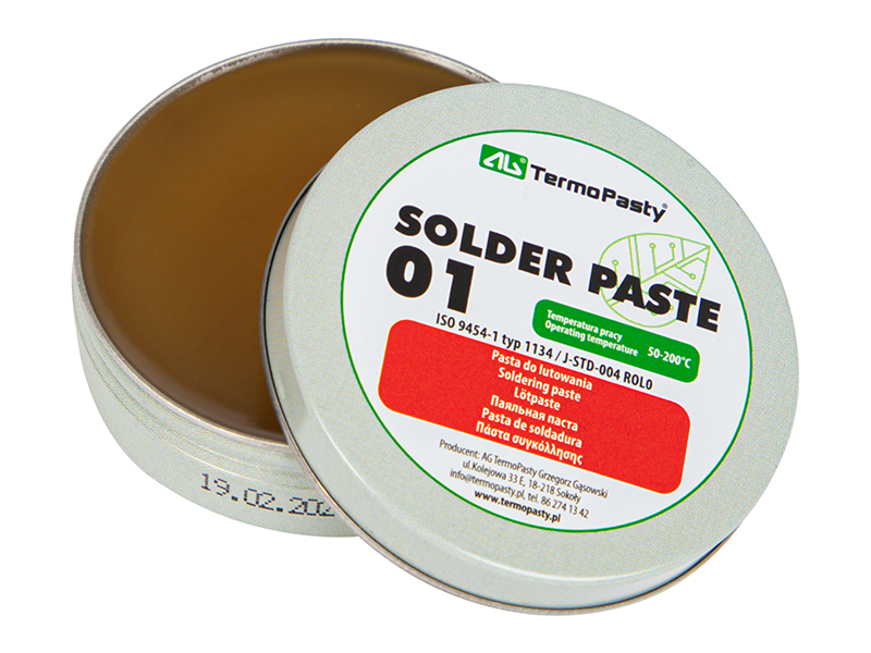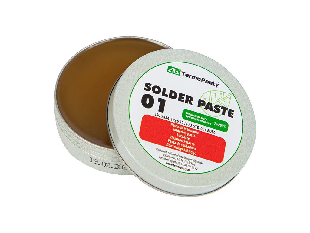 Spájkovacia pasta 20 g AG TermoPasty je praktické tavidlo na báze kolofónie so stredne aktívnym účinkom. Uľahčuje spájkovanie súčiastok a spojov s prvkami z medi, striebra, zinku a niklu. Vďaka svojej konzistencii sa pohodlne nanáša a je vhodná na použitie pri montáži elektronických zariadení, v rádiovej technike aj v komunikačných aplikáciách.
