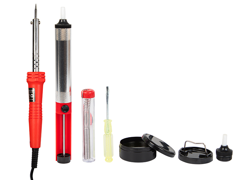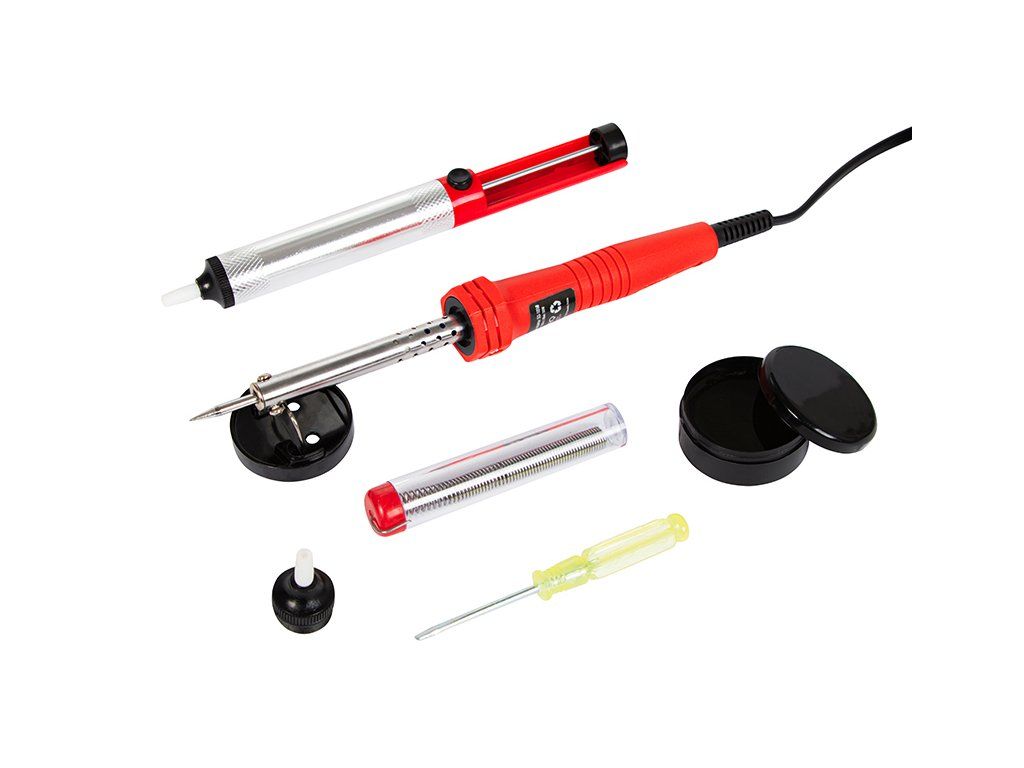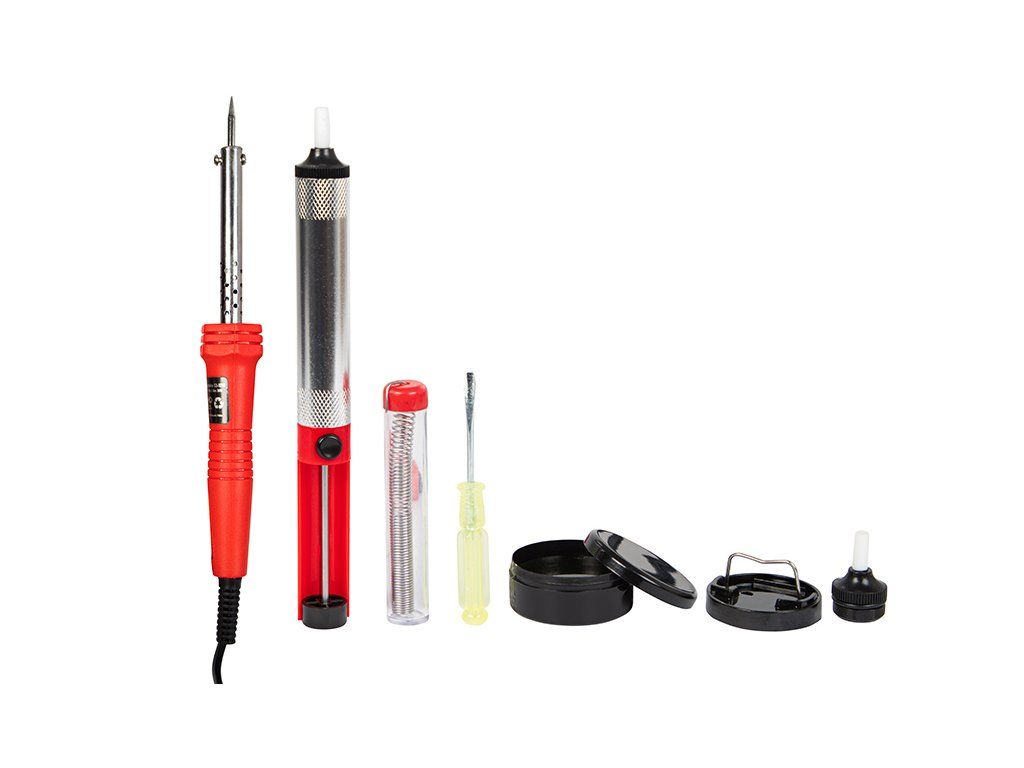 Spájkovacia sada 53-101- je praktická 7-dielna súprava určená na spájkovanie, opravy elektroniky a jemné montážne práce. Hodí sa najmä na prácu s malými elektronickými súčiastkami a SMD obvodmi, kde je dôležitá presnosť, spoľahlivosť a rýchla dostupnosť všetkého potrebného príslušenstva v jednom balení.