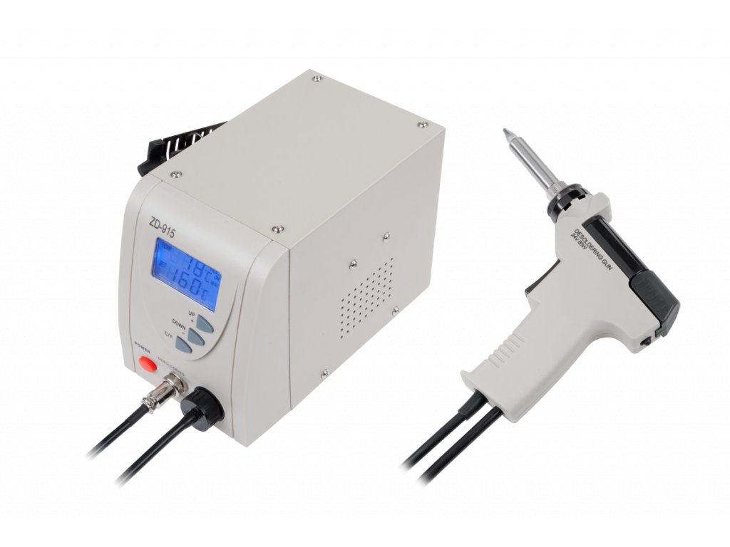 Obsah balenia: spájkovacia pištoľ s pripojeným spájkovacím hrotom, dva náhradné spájkovacie hroty, náhradné filtre, 3 zárezy pre rôzne hrúbky spájkovacích hrotov, adaptér na pripojenie stanice k banke, držiak na spájkovaciu banku, spájkovacia banka na spájkovací hrot, stojan na spájkovačku, napájací kábel.