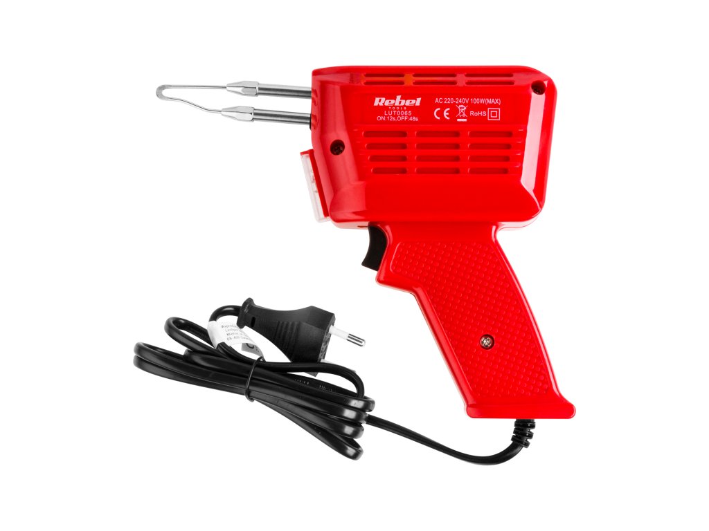 Transformátorová spájkovačka s výkonom 100 W je určená na použitie v interiéri a používa sa na spájkovanie alebo uvoľňovanie malých elektronických súčiastok a dielov.