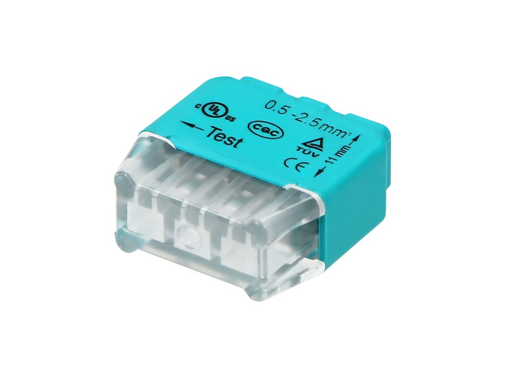 - Univerzálnosť: Spojovacie svorky sú určené na pripojenie troch vodičov, čo ich robí ideálnymi pre zložitejšie elektrické inštalácie, kde je potrebné spojiť viacero vodičov.