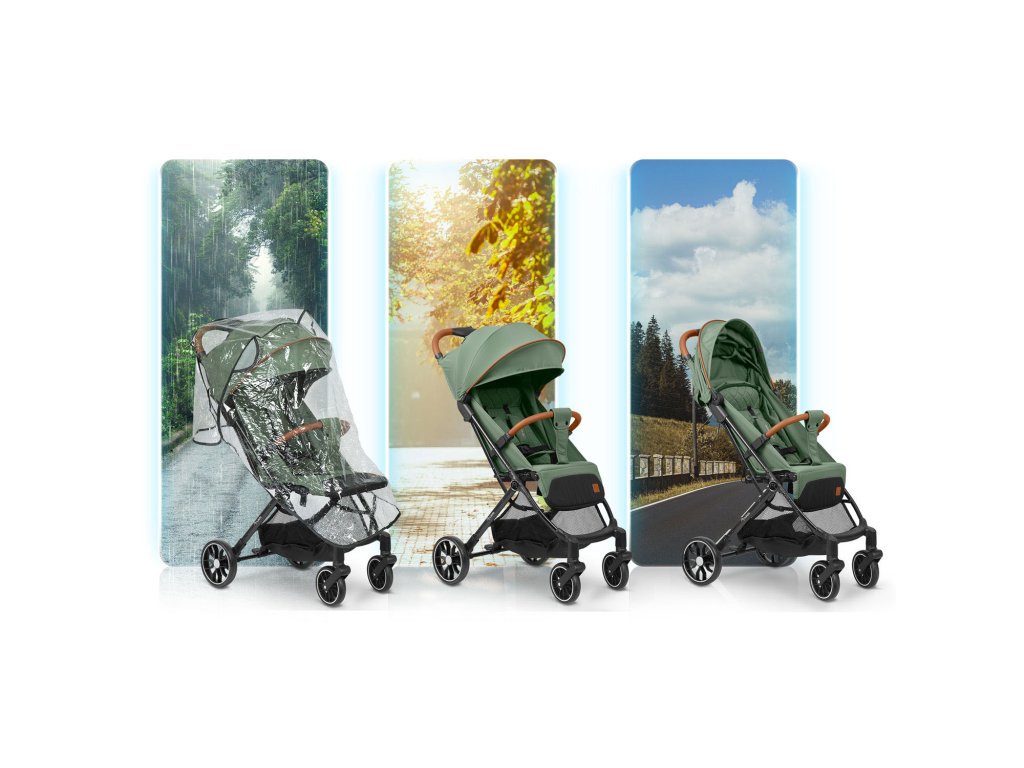 - Lesné výlety v daždi - Veľké kolesá uľahčujú pohyb po nerovnom teréne a pláštenka chráni vaše dieťa pred vlhkosťou.