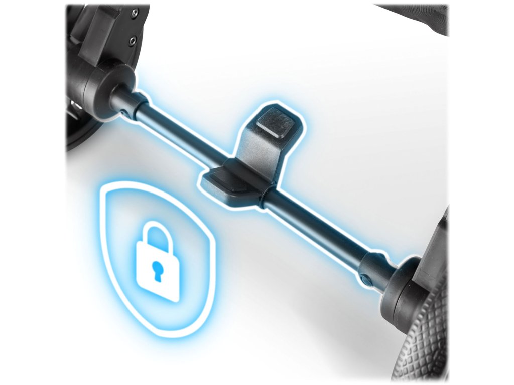 Blokovací mechanizmus zadného kolesa. Zámok kolies zaistí, že kočík zostane na svojom mieste, keď ho potrebujete.