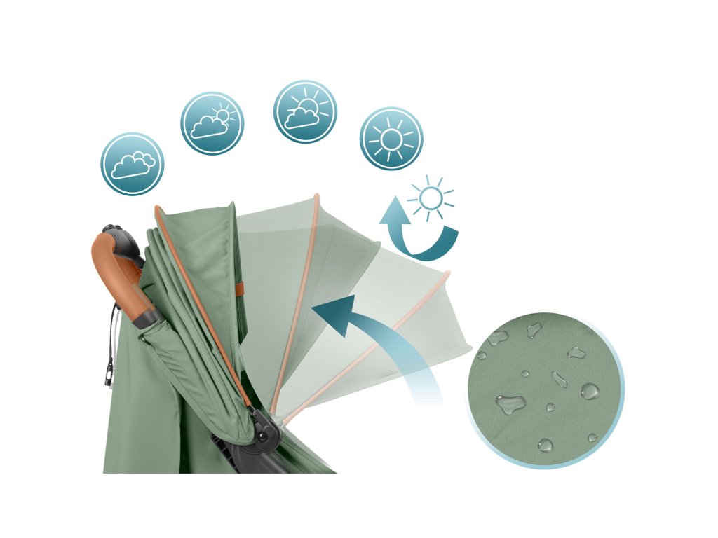 Umožňuje chrániť dieťa pred priamym slnečným žiarením, vetrom alebo miernym dažďom.