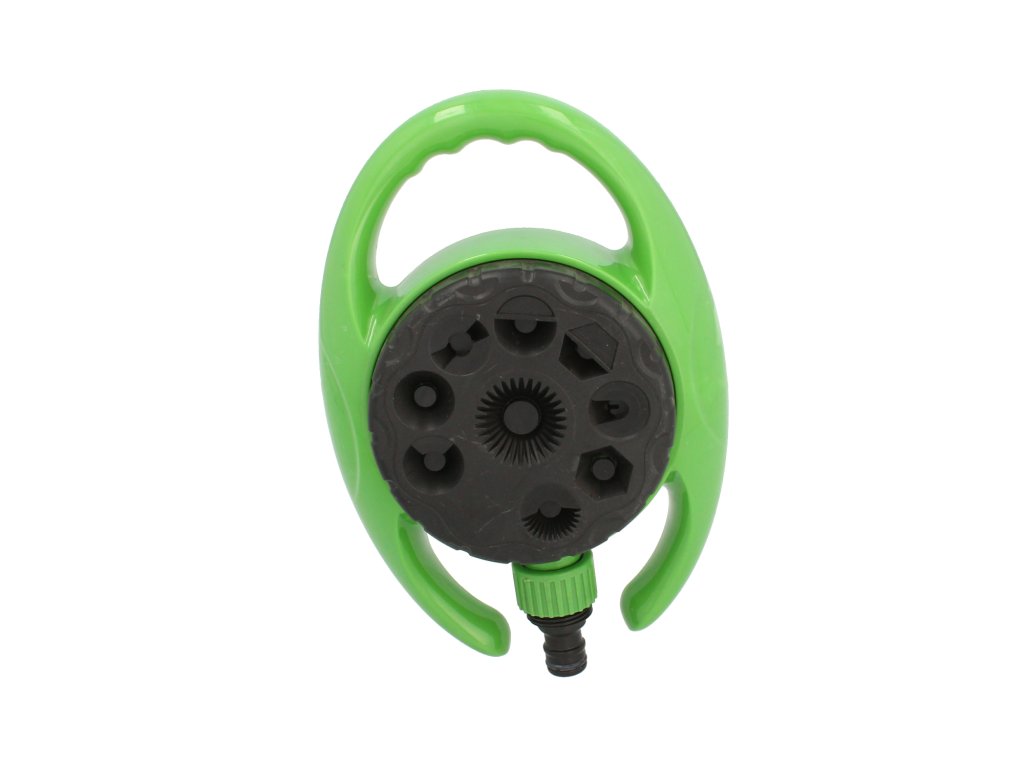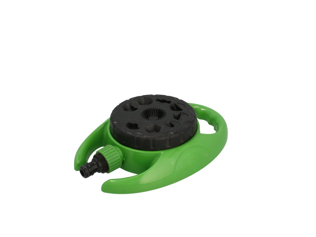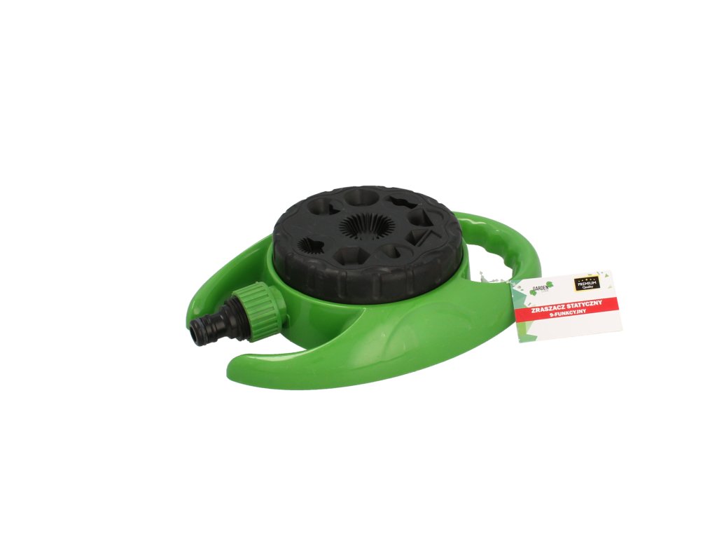 Statický postrekovač 9-funkčný je vynikajúce riešenie na zavlažovanie malých záhrad. Moderný a multifunkčný, a pritom veľmi jednoduchý na obsluhu. Po pripojení k záhradnej hadici stačí vybrať funkciu otočením čierneho horného otočného gombíka a je hotovo. Plastová, stabilná konštrukcia zabezpečuje, že postrekovač je ideálny pre záhrady alebo parcely, poskytujúci rýchle a pohodlné zavlažovanie. Umožňuje vyhnúť sa zdĺhavému ručnému polievaniu.