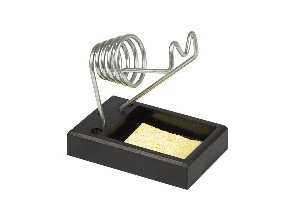 Stojan pomáha udržiavať spájkovačku v bezpečnej polohe, čím znižuje riziko poškodenia pracovnej plochy a zvyšuje komfort pri práci. Hubka v balení umožňuje priebežné čistenie hrotu, čo prispieva k lepšiemu prenosu tepla a presnejšiemu spájkovaniu. Konštrukcia stojana zároveň napomáha správnemu odvádzaniu tepla.