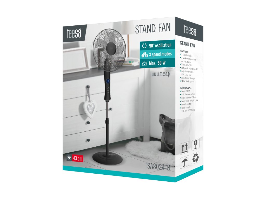 Stojanový ventilátor Teesa s diaľkovým ovládaním (čierny)
