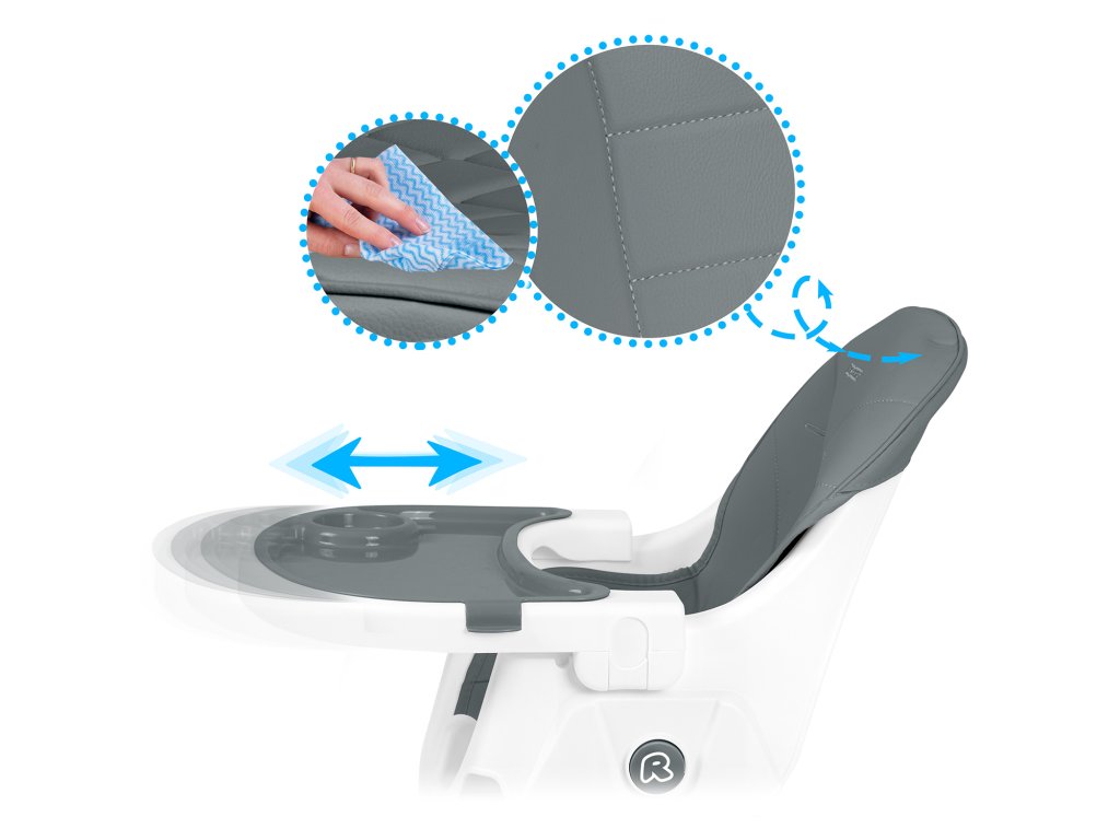 Odnímateľná vložka na tácku výrazne uľahčuje údržbu čistoty. Mäkký a komfortný materiál poťahu je vyrobený z materiálu, ktorý neabsorbuje nečistoty.