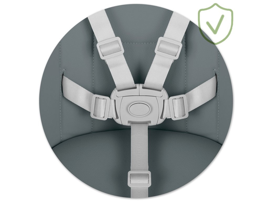 Dodatkové zabezpečenie, 5-bodové bezpečnostné pásy, ktoré neumožnia samočinné vysunutie dieťaťa zo stoličky. Možno ich úplne demontovať, keď už nebudú potrebné.