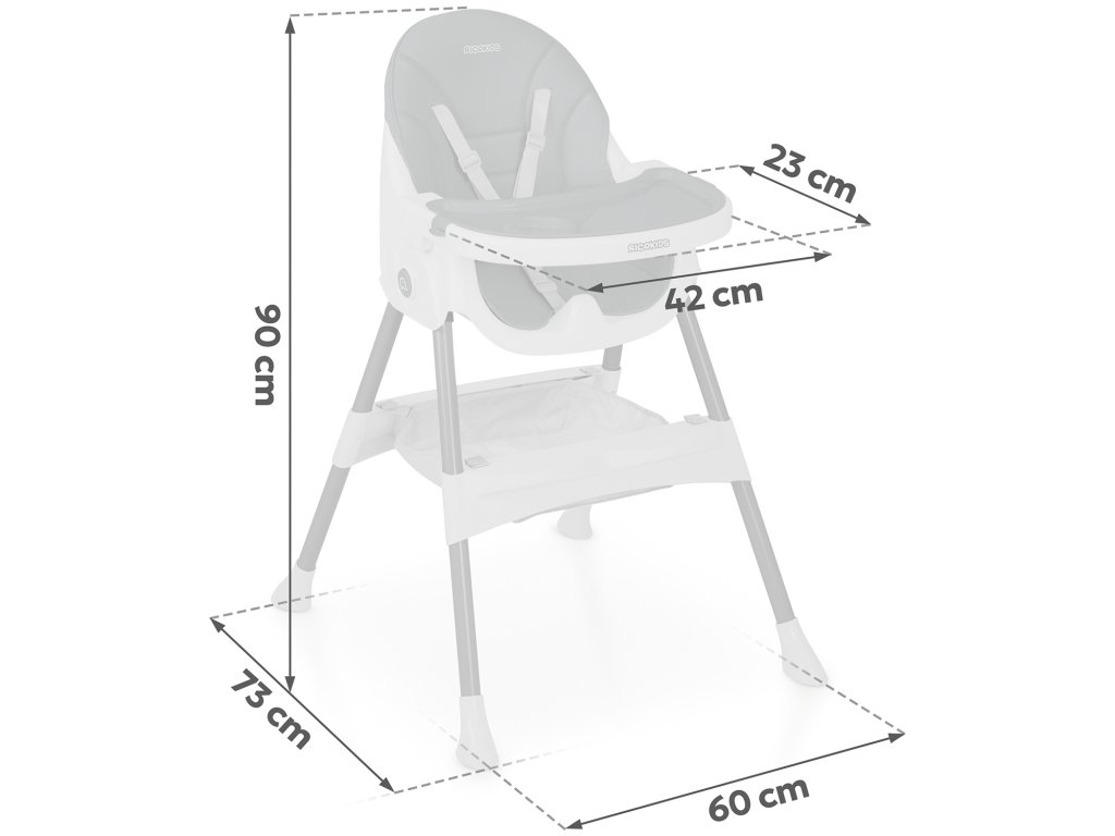 Stolička umožňuje voľné nastavenie vzdialenosti tácky od dieťaťa. Možno ju tiež kedykoľvek úplne demontovať.