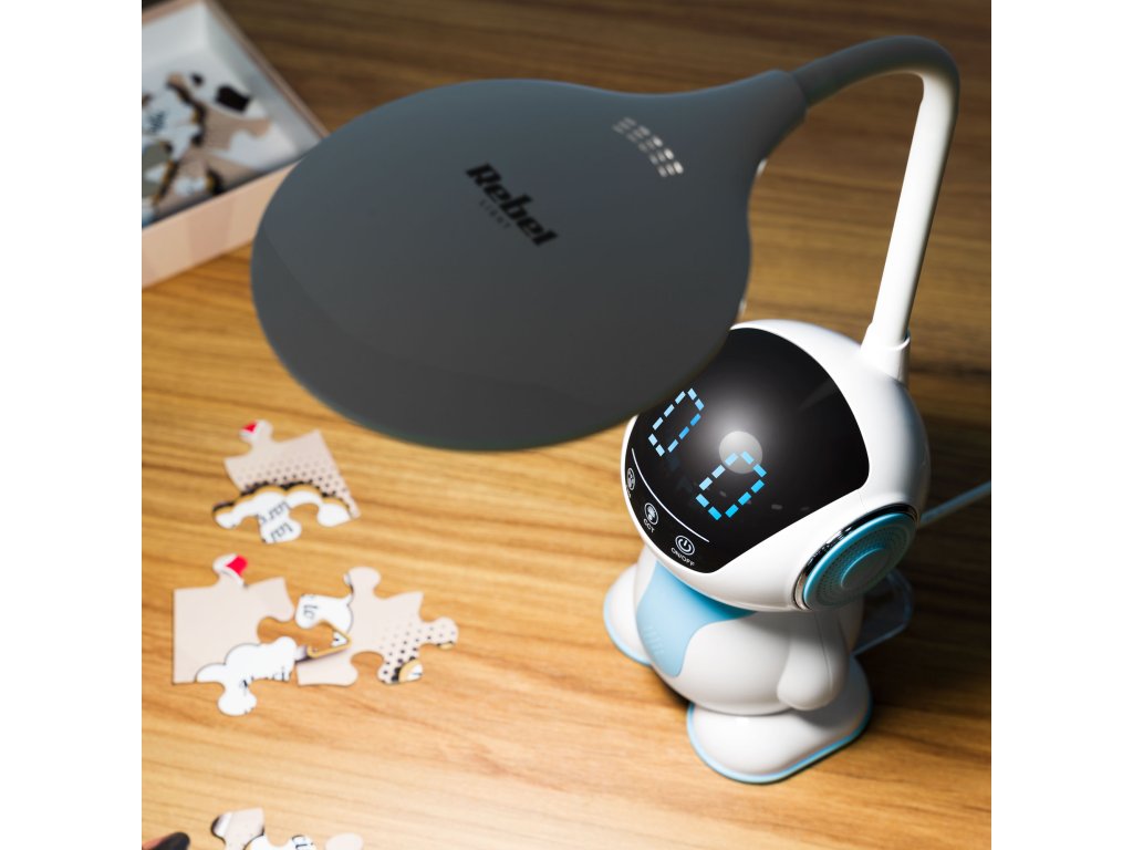 Stolná LED lampa Rebel KOM1017 upúta pozornosť vášho dieťaťa od prvého momentu. Zariadenie má tvar robota, takže určite osloví každého malého prieskumníka, ktorý sa stane jeho najlepším kamarátom. V našej ponuke nájdete aj stolové lampy pre milovníkov psov či mačiek.