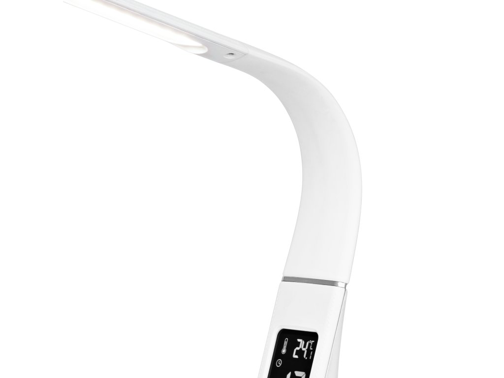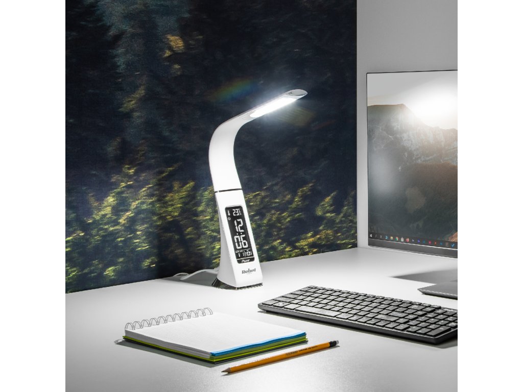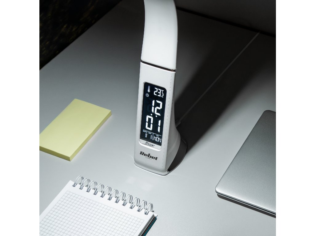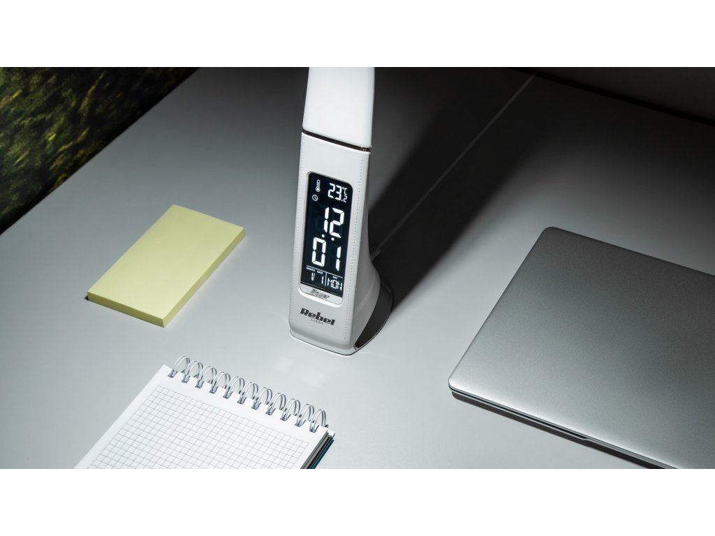 Máte radi jednoduché a funkčné zariadenia? Ak áno, určite sa vám bude páčiť stolová LED lampa s displejom od Rebel. Vďaka vyššie uvedenému displeju, ktorým je zariadenie vybavené, budete vedieť aktuálny čas, dátum, deň v týždni a teplotu a tiež si budete môcť nastaviť budík a odložiť budenie - to je ideálne riešenie pre ľudí ktorí oceňujú praktické riešenia. Dôležité je, že hoci je táto stolná lampa napájaná zo siete, aj v prípade výpadku prúdu môžete zachovať nastavenie času a chod budíka pomocou batérie.