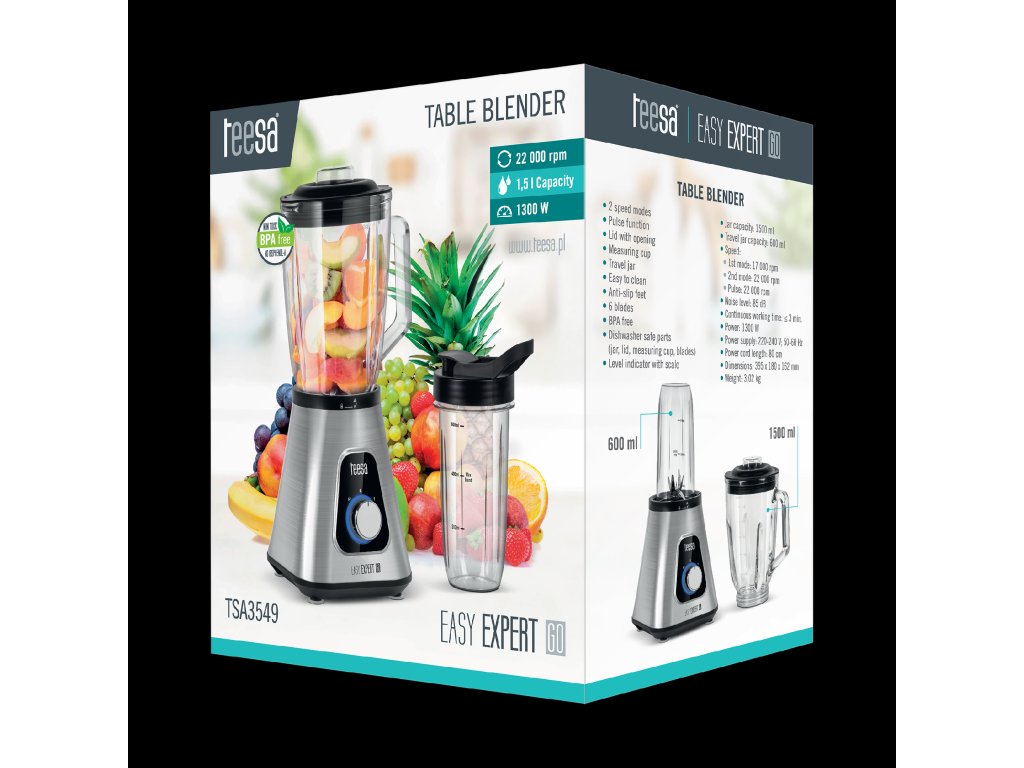 Svieži ovocný kokteil, krémová polievka so zeleninou alebo možno omáčka k jedlu? Bez ohľadu na to, čo chcete pripraviť, dobrý mixér je vo vašej kuchyni absolútnou nevyhnutnosťou. Prečo si teda nezvoliť mixér Teesa s 1,5-litrovou sklenenou nádobou?