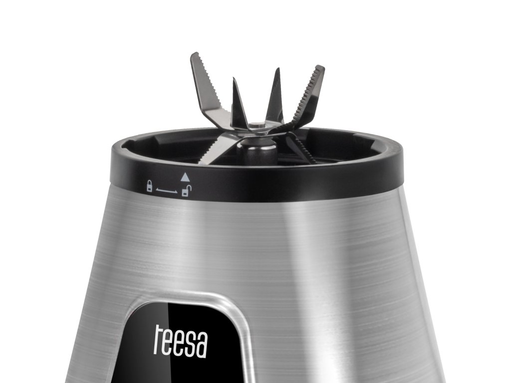 Mixér Teesa je vybavený 6 extrémne odolnými 4 čepeľami z nehrdzavejúcej ocele. Nielenže umožňujú dokonalé pomletie tvrdej zeleniny a ovocia, ale sa s nimi aj dobre pracuje ako drvič ľadu.