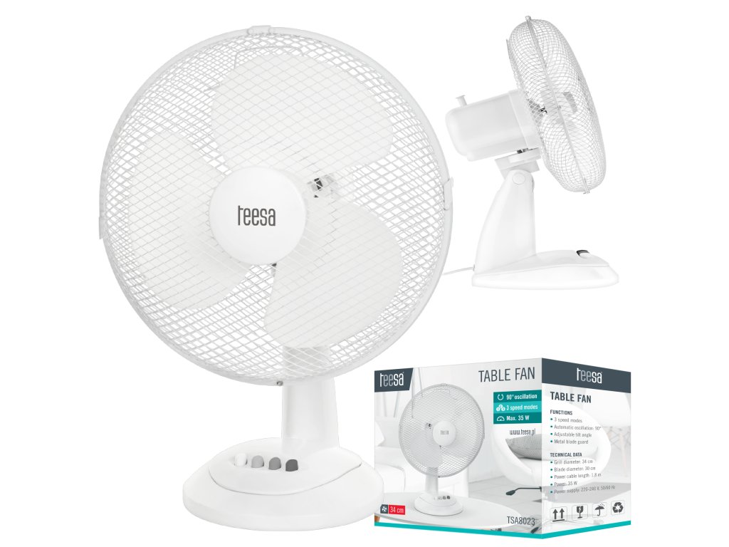 Medzi výhody zariadenia určite patrí aj automatická oscilácia a možnosť zmeny uhla sklonu. Ventilátor Teesa je bezpečný aj vďaka kovovému krytu, ktorý obklopuje vrtule zariadenia. Vyskúšajte ho ešte dnes a pocíťte chladivý vánok počas horúcich dní!