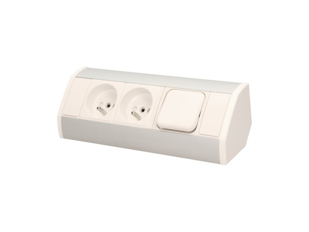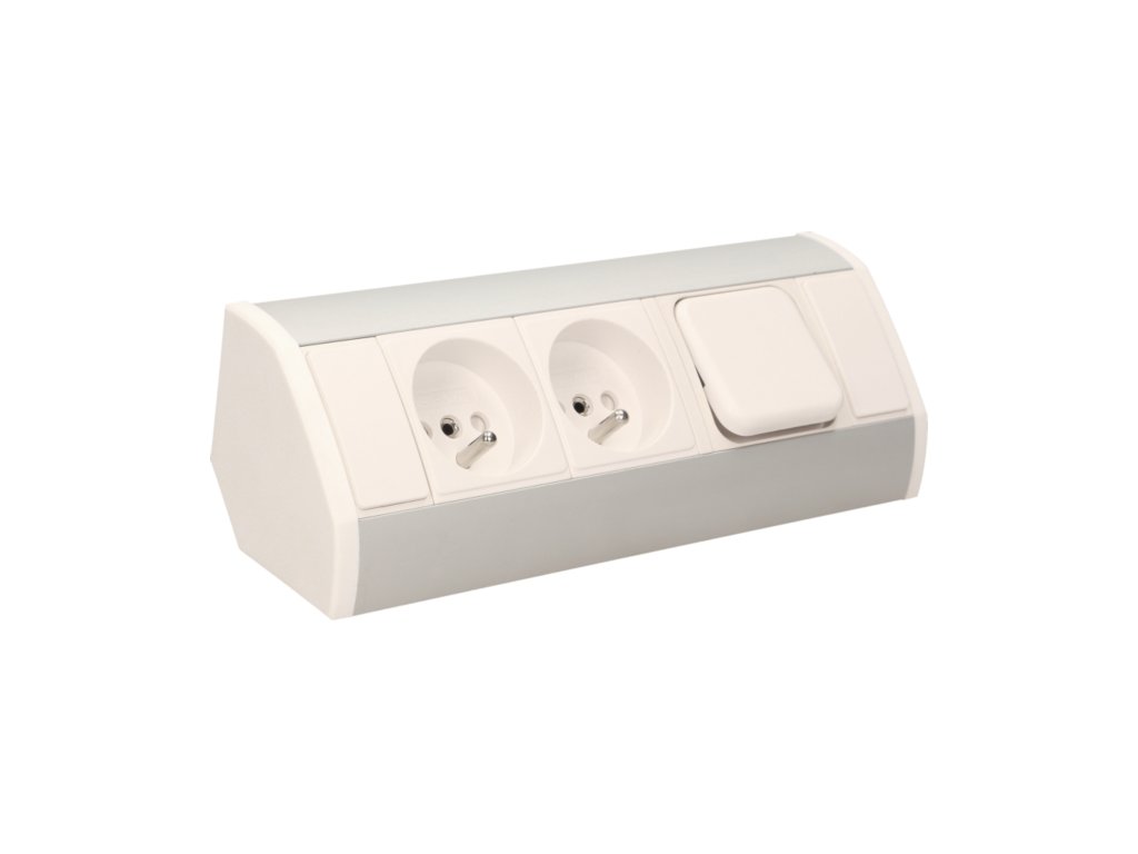 Strieborno-biela zásuvka s vypínačom nábytková