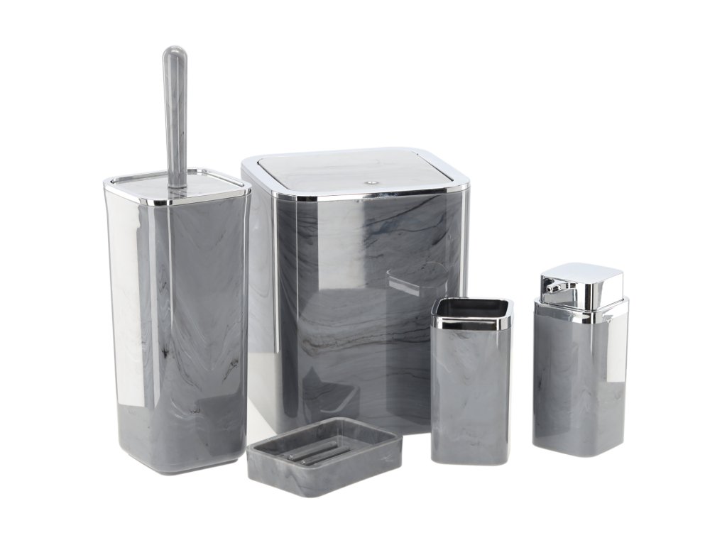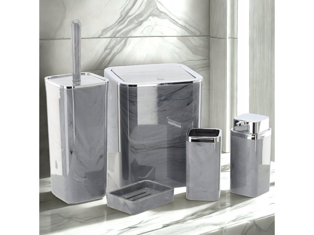 ŠTVORCOVÁ KÚPEĽŇOVÁ SÚPRAVA 5 KS MARMOROVÁ SIVÁ *5140
