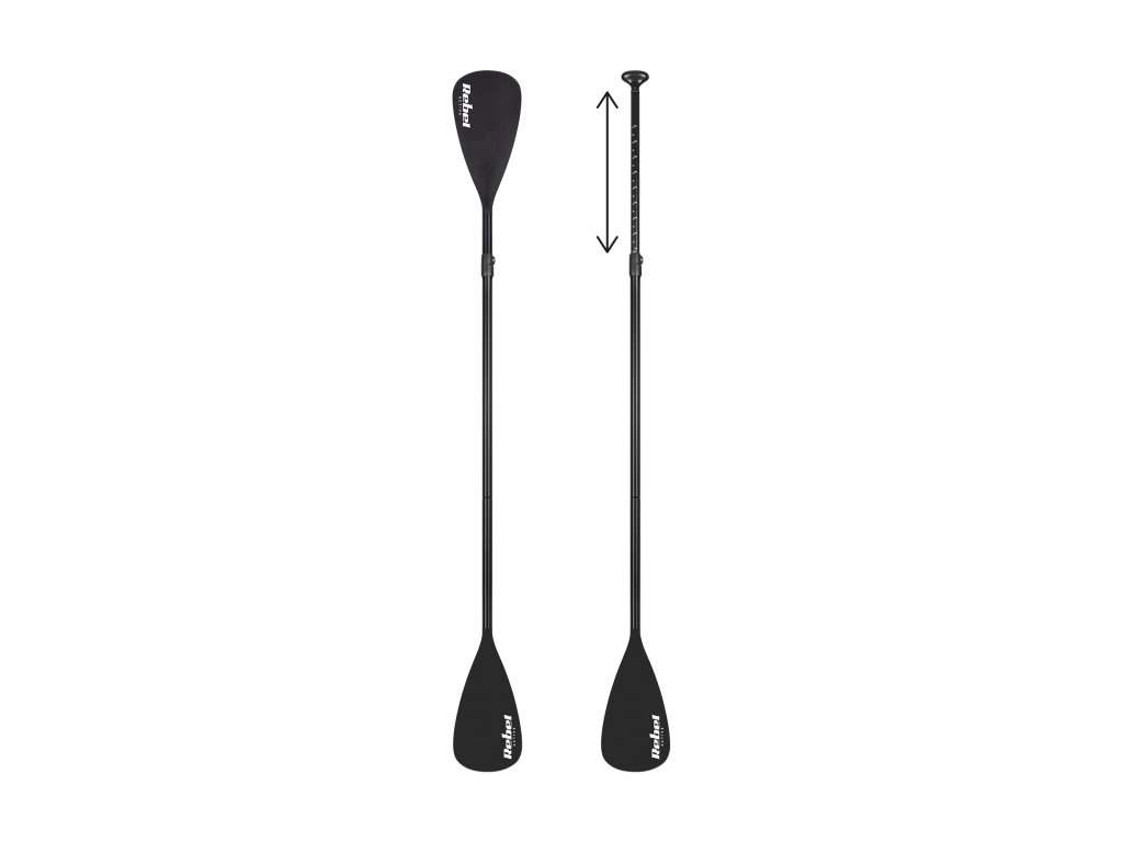 Pádlo REBEL sa skladá zo štyroch častí, čo uľahčuje jeho transport a skladovanie. Nastaviteľná dĺžka v rozsahu od 205 do 225 cm umožňuje prispôsobiť sa výške a preferenciám používateľa, čím zaisťuje pohodlie pri plavbe na doske SUP alebo v kajaku. Možnosť montáže dvoch listov umožňuje využívať pádlo ako tradičné kajakové pádlo, čo ho robí ideálnou voľbou pre tých, ktorí hľadajú univerzálne riešenia.