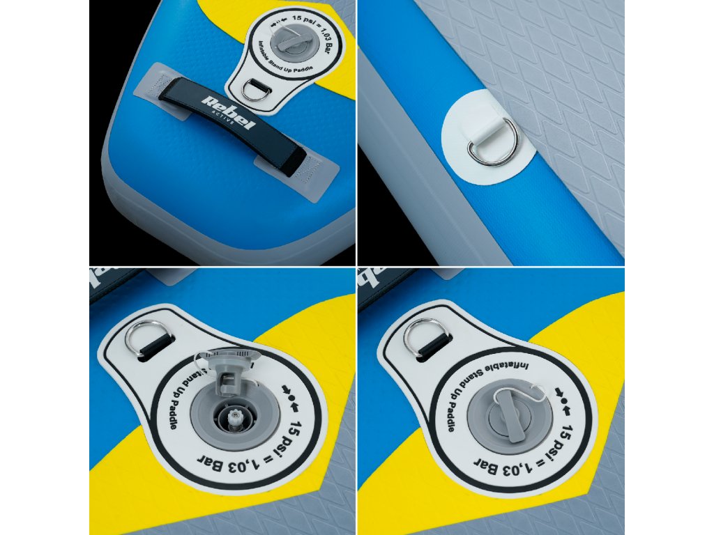 Paddleboard na státie Rebel Active sa vyznačuje tvrdou a stabilnou konštrukciou, ktorá bola vyrobená s využitím technológie drop-stitch. Vďaka nej, bez ohľadu na úroveň vašich schopností, môžete bezpečne prechádzať vodami ako postavení, tak aj posediačky. Protišmyková paluba potiahnutá penou EVA o hrúbke 3 mm zabezpečuje vynikajúcu priľnavosť, takže ani intenzívna jazda na doske nie je problém.