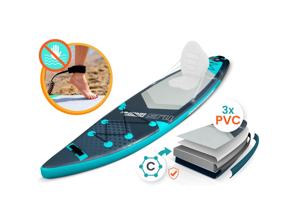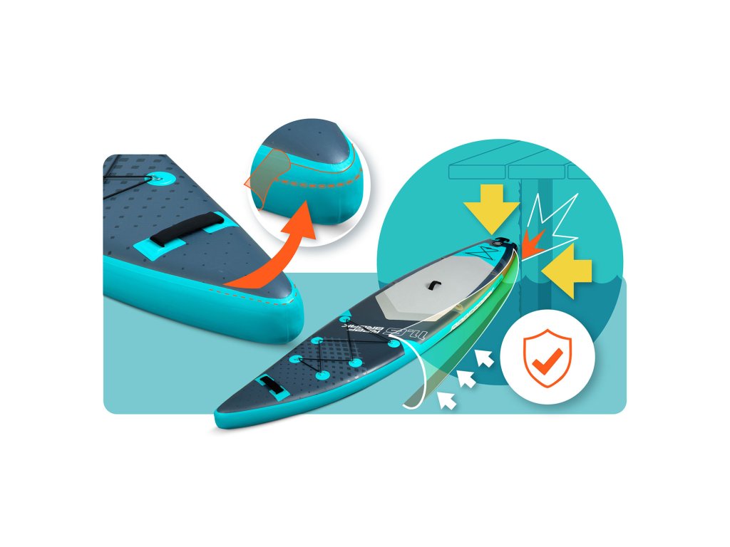 Špeciálne zosilnené okraje chránia paddleboard pred poškodením a zvyšujú jeho trvanlivosť. Vďaka nim je tvoj SUP odolný voči nárazom a intenzívnemu používaniu – pripravený na každé vodné dobrodružstvo.