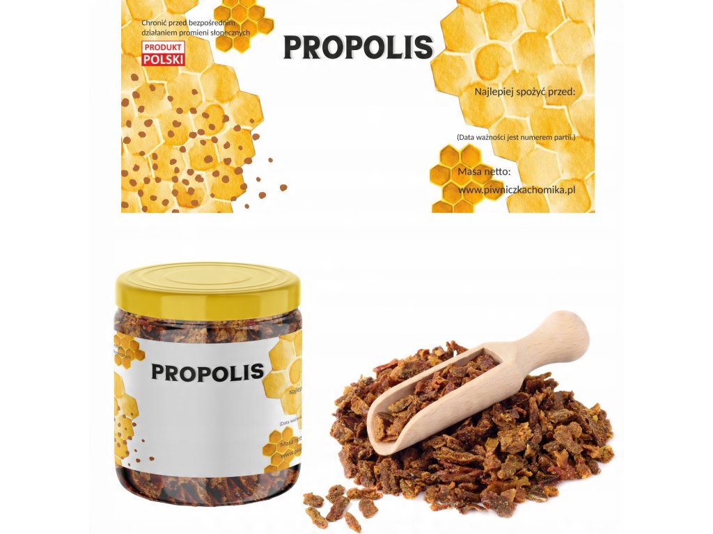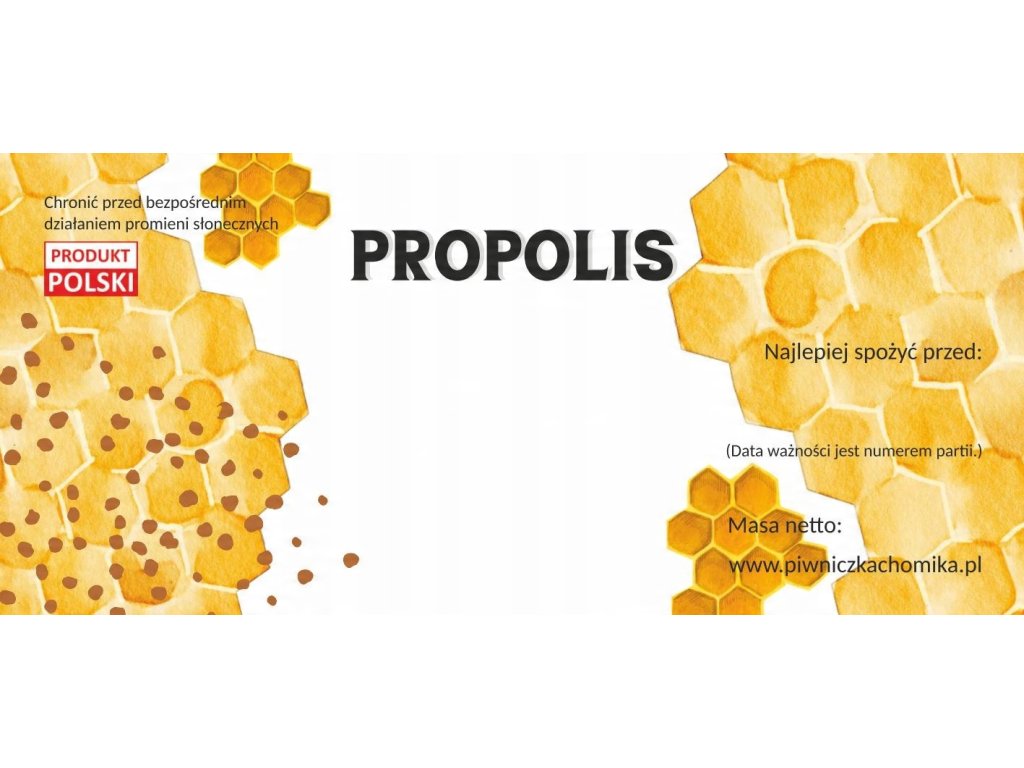 Súprava etikiet určených na propolis. Súprava sa skladá zo 100 kusov etikiet. Vďaka etikete bude môcť spotrebiteľ identifikovať druh produktu a dátum spotreby.Rozmery: