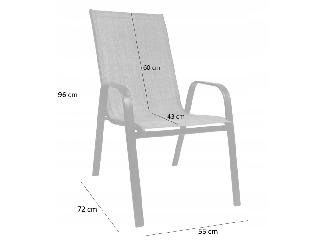 Záhradná stolička je pôsobivo pevné, a pritom ľahké vybavenie vyrobené z vysokokvalitnej ocele s práškovým nástrekom. Konštrukcia sa vyznačuje stabilitou a odolnosťou voči korózii a nepriaznivým poveternostným podmienkam, ako sú zrážky alebo UV žiarenie.