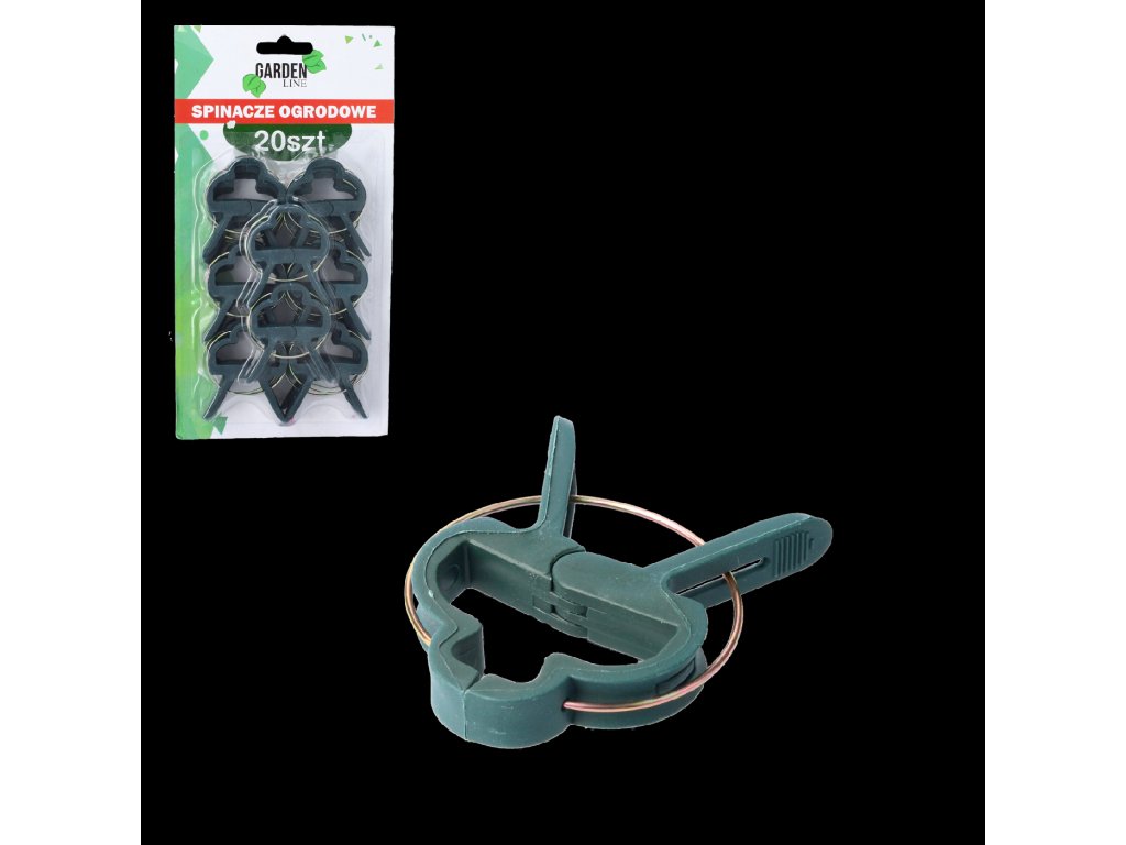 Záhradné spinky na rastliny. Pomáhajú pripevniť rastlinu k tyčiam. Neničia rastlinu. Umožňujú jej zdravý rast a pritom stabilizujú jej rast. Vyrobené sú z plastu. Opakovane použiteľné spinky. Nevyhnutné pri nákupe záhradných tyčí.Dodatočné parametre