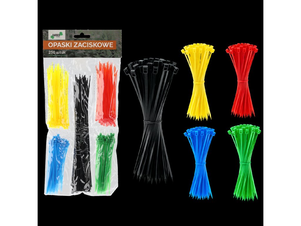 Sťahovacie pásky na jedno použitie na zväzovanie rastlín. Rôznofarebné, dekoratívne sa dokonale hodia na pripevnenie rastlín k tyčiam alebo podperám. Môžu byť použité v širokom rozsahu teplôt vo vnútri aj vonku budov. • Sada obsahuje 250 pások rôznej veľkosti a farby. • Dostupné v 4 farbách: červená, modrá, žltá a zelená.Dodatočné parametre